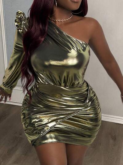 Women'S One Shoulder Twist & Pleated Dress-60%