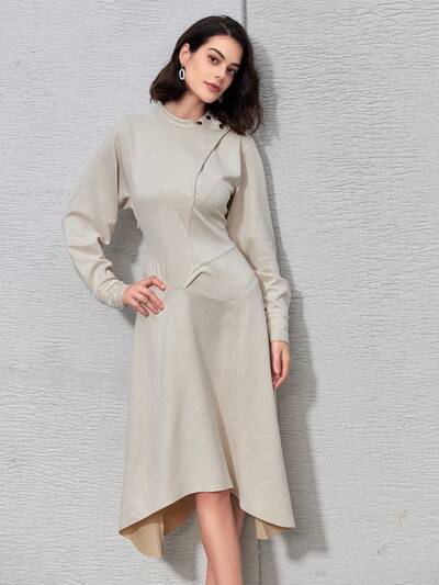 Solid Color Round Neck Long Sleeves Dress-23%