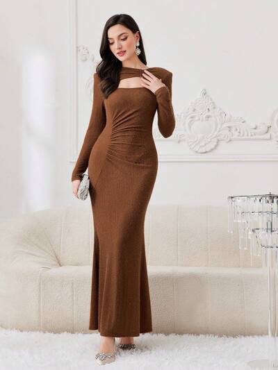 Solid Color Hollow Out Pleated Mermaid Dress Long Evening Dresses-65%