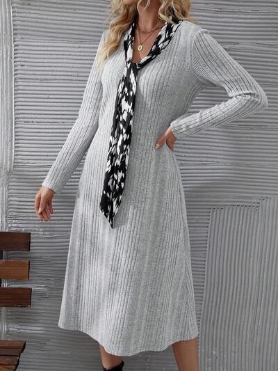 Keyhole Neckline Drop Shoulder Belted Dress-65%