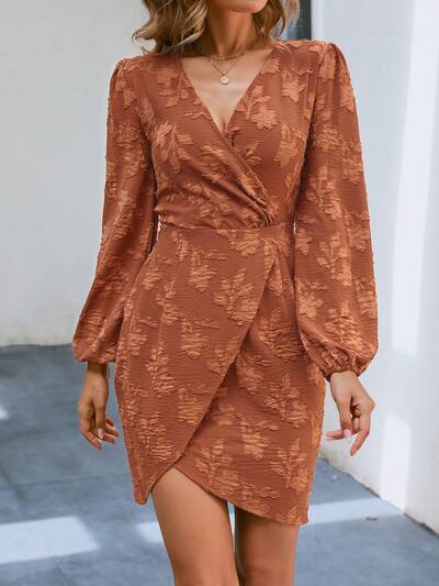 Jacquard Lantern Sleeve Tulip Hem Dress-23%