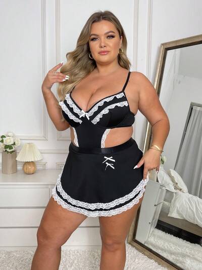 Plus Size Sexy Lace Spliced Hollow Out Role Play Costume Set-59%