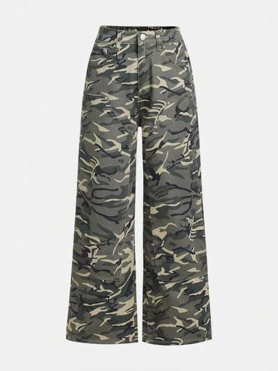 Teen Girls' Y2k Streetwear Camouflage Low Waist Wide Leg Denim Pants-60%
