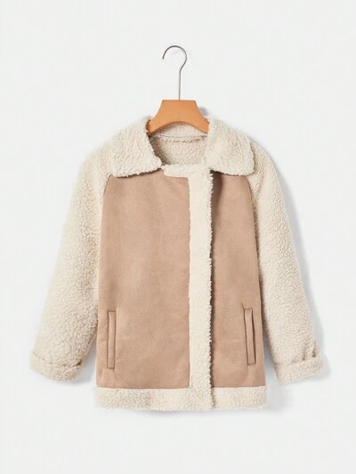 Drop Shoulder Fleece Trim Biker Coat-48%