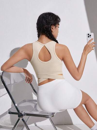 Teen Girls' Knit Solid Color Ribbed Crisscross Back Hollow Out Sports Casual Tank Top-65%