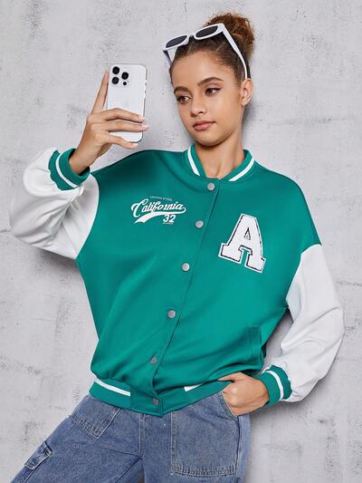 Teenage Girls' Casual Letter & Patchwork Colorblock Printed Jacket-60%
