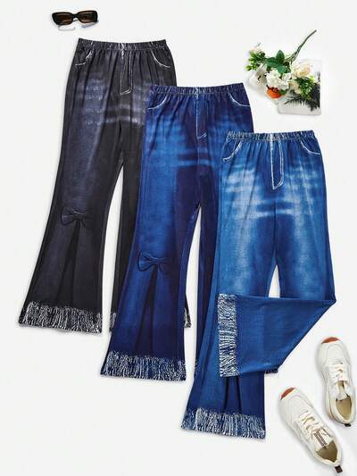 Teen Girls' 3pcs/Set Denim Effect Long Pants-60%