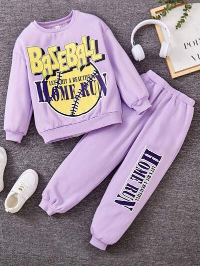 Tween Girl Letter Graphic Pullover & Sweatpants-60%