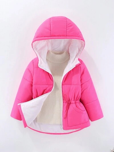 Toddler Girls' Thickened Hooded Coat With Collar