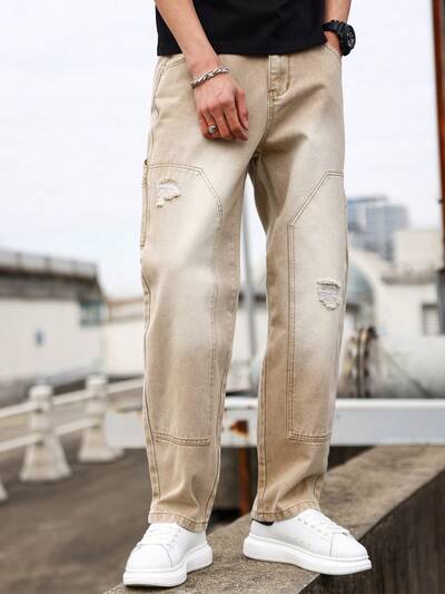Men's Regular Fit Mid Rise Straight Leg Jeans With Casual Style