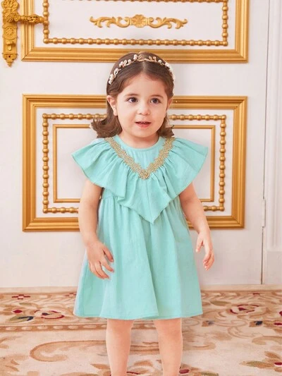 Baby Girl Casual Solid Color Sleeveless Ruffled Loose Dress-43%