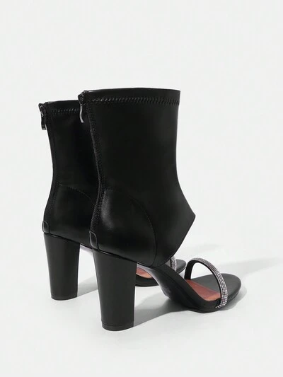 Rhinestone Decor Ankle Strap Women's Fashion High Heel Sandals-14%