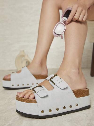 Women's High Platform Buckled Toe Cross Band Footbed Sandals-14%