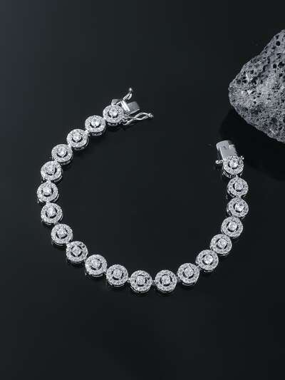 1pc Fashionable Minimalist Copper Round Cubic Zirconia & Braided Adjustable Bridal Wedding Bracelet-3%