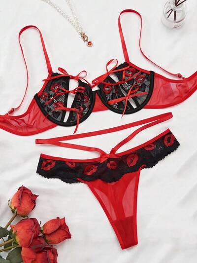 Valentines Women's Sexy Lips Lace Lingerie-62%