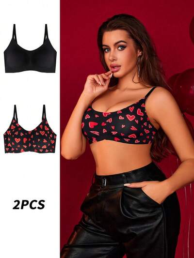 Women's Valentine's Day Heart Print Bra Set (2 Pieces) Lingerie-63%