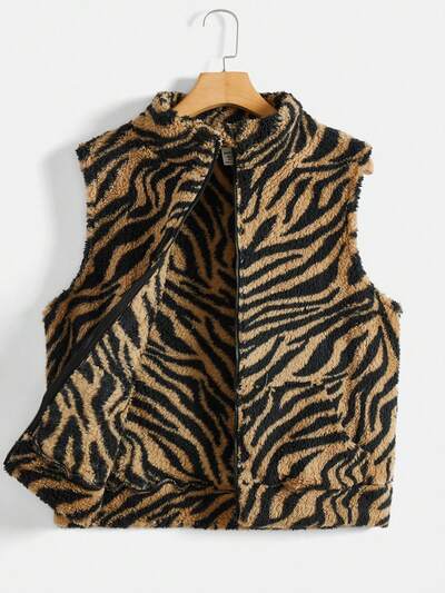 Teen Boy Zebra Striped Teddy Vest Jacket-60%