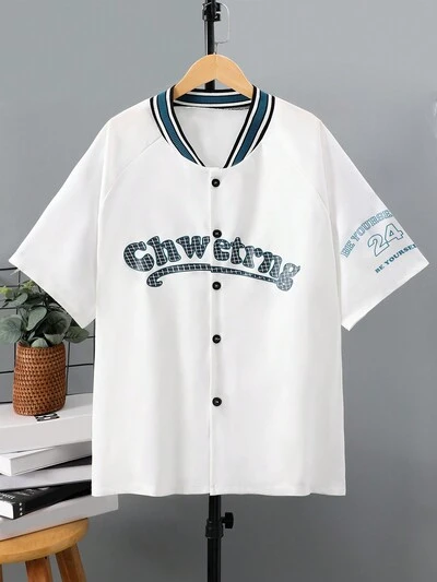 Teen Boys' Short Sleeve Button Front Shirt With Letter Print-59%