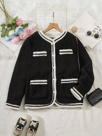 Teen Girl Dual Pocket Drop Shoulder Hooded Teddy Coat
