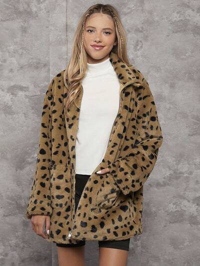 Teen Girl Dalmatian Print Zip Up Fuzzy Coat,In Fall/Winter