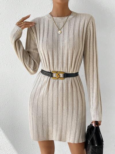 Solid Ribbed Knit Sweater Dress Without Belt Fall Cloth For Women-60%