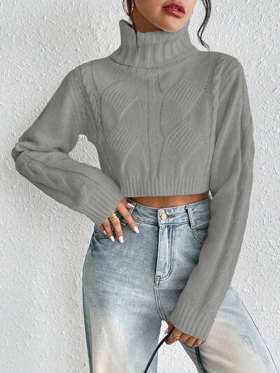 Solid Color High Neck Cropped Sweater Pullover Knit Pullover Fall Winter Sweater-52%