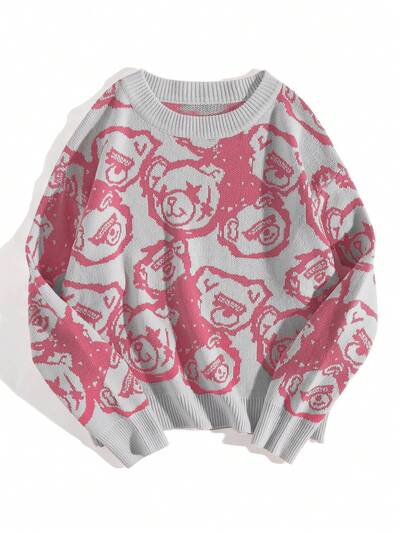 Cartoon Pattern Long Sleeve Knit Pullover Fall Winter Sweater-35%