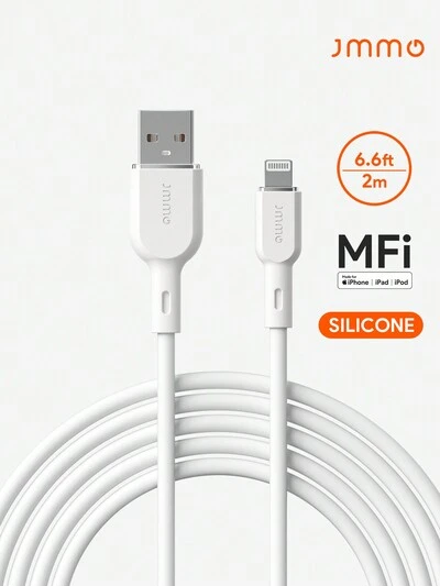 JMMO 1PC Silicone USB-A To Lightning Cable,USB To Lightning Cable Cord 6.6FT/2M [ MFi Certified]