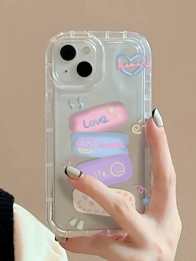 Tpu Transparent Black Colorful Painting Laser-Cut Protective Space-Themed Phone Case,International Version, Not The Domestic VersionHeart & Letter Graphic Phone Case