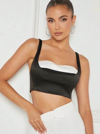 Colorblock Hook & Eye Sexy Ruched Sheer Cami Top-41%