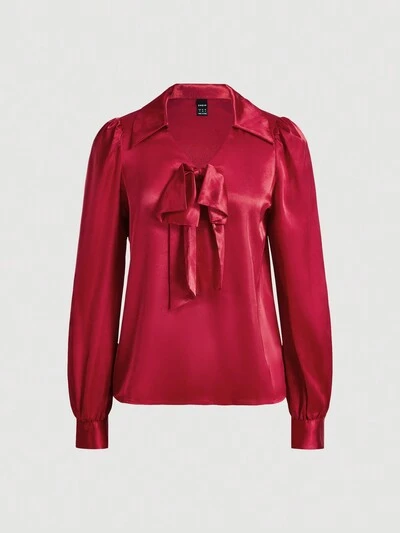 Dalmatian Print Draped Collar Flounce Sleeve Blouse-65%