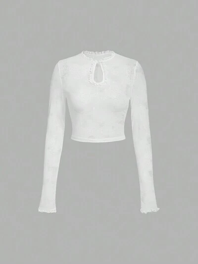 Allover Print Ruffle Trim Lantern Sleeve Blouse-32%