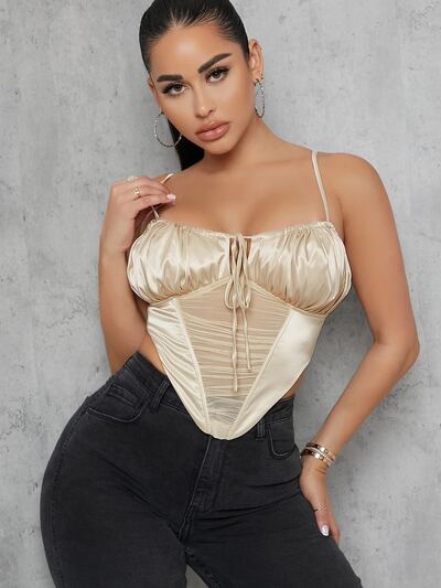 Satin Self-Tie Mesh Insert Ruched Cami Top-60%