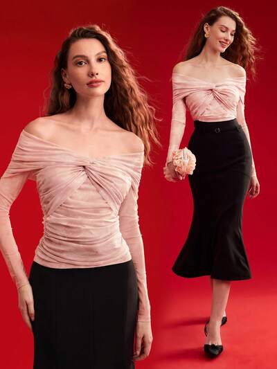 Women Summer Black Short Sleeve Faux Pearl Round Neck Twisted Hem Cropped See-Through Top Suitable For Parties-32%