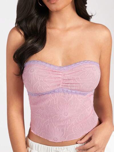 Ladies' Purple Lace & Pink Jacquard Sweetheart Neckline Top, Perfect For Dating-42%