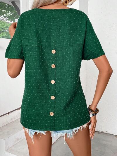 Buttoned Half Placket Solid Color Shirt With Back Ties