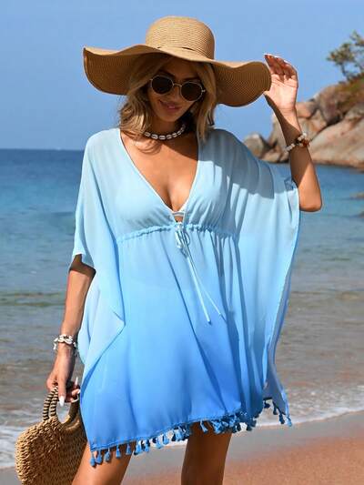 Vacation Spring/Summer Fringed Woven Belt Super Loose Long Women's Shirt With Patchwork And Ruffles-32%