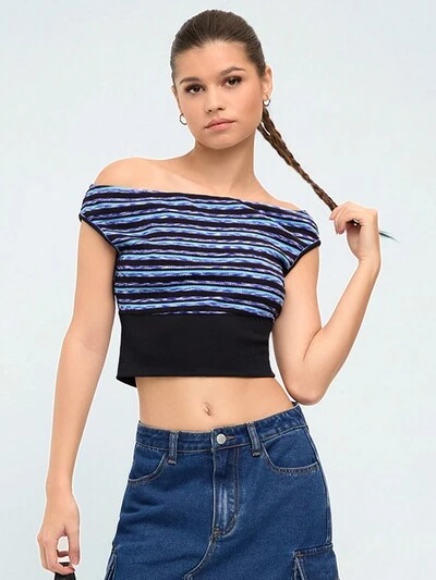Solid Color Off Shoulder Cropped Casual Top-32%