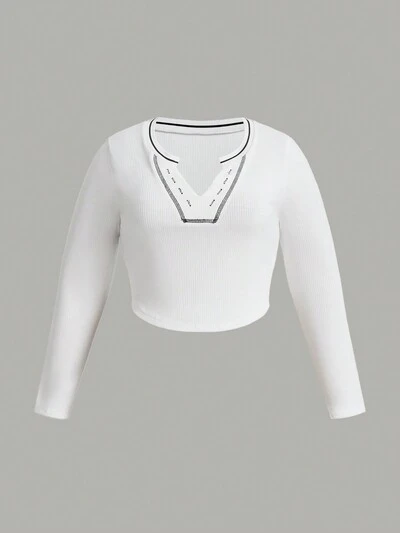Plus Contrast Binding Notched Neckline Crop Tee-30%