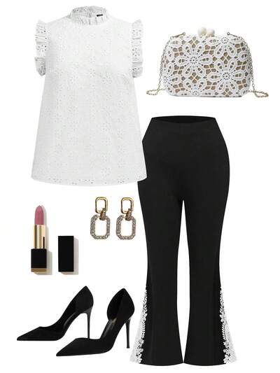 Plus Size Women's Cap Sleeve Hollow Out Top-30%