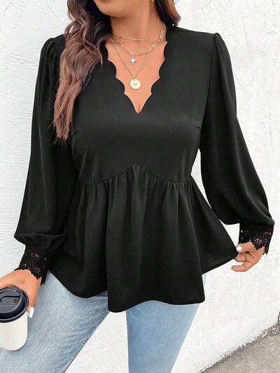 Plus Size Solid Color Shell Trim Doll Shirt-65%