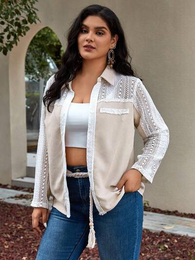Plus Contrast Lace Shirt-30%