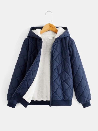 Tween Boy Teddy Lined Hooded Argyle Quilted Coat,In Fall/Winter-60%