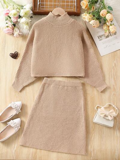 Tween Girl Mock Neck Solid Sweater & Knit Skirt-60%
