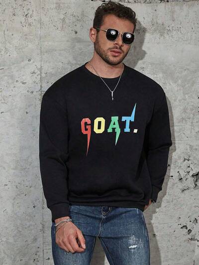 Men's Plus Size Letter Print Round Neck Long Sleeve Sweatshirt-60%