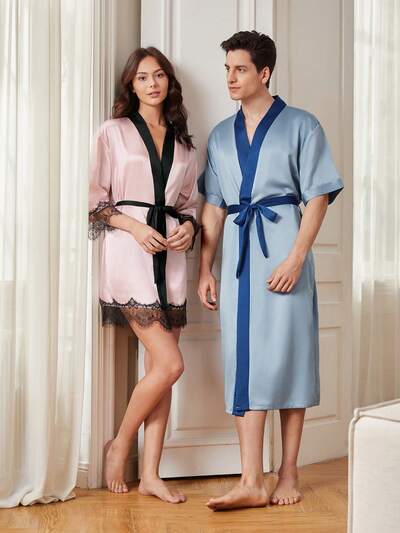 1pc Men's Color Block Rolled Edge Robe For Home Wear-59%