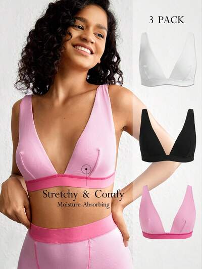 Leisure 3pack Lightweight & Comfy Rib Long Triangle Cup Bralette-18%