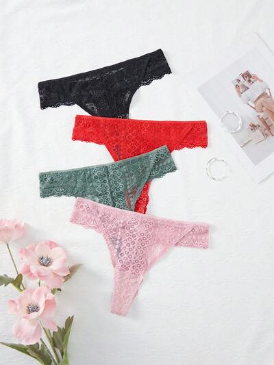 Women 4-Pack Lace Thongs, Solid Color Summer Sexy Thongs-19%