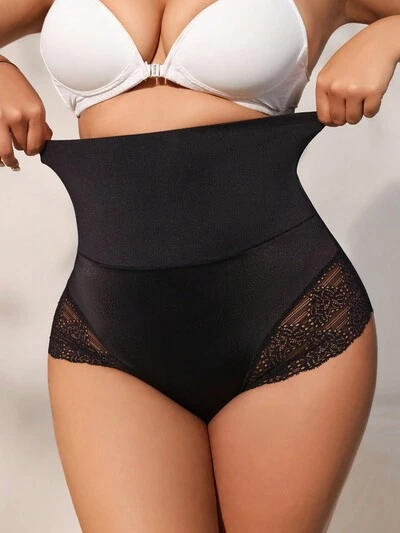 Women's Plus Size Tummy Control High Waist Lace Trimmed Shaping Tights,1pc Panty