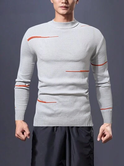 Men's Striped Stand Collar Slim Fit Pullover Sweater